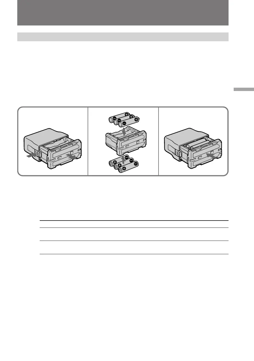 Use the battery case (supplied) and six size AA (LR6) Sony Alkaline batteries (not