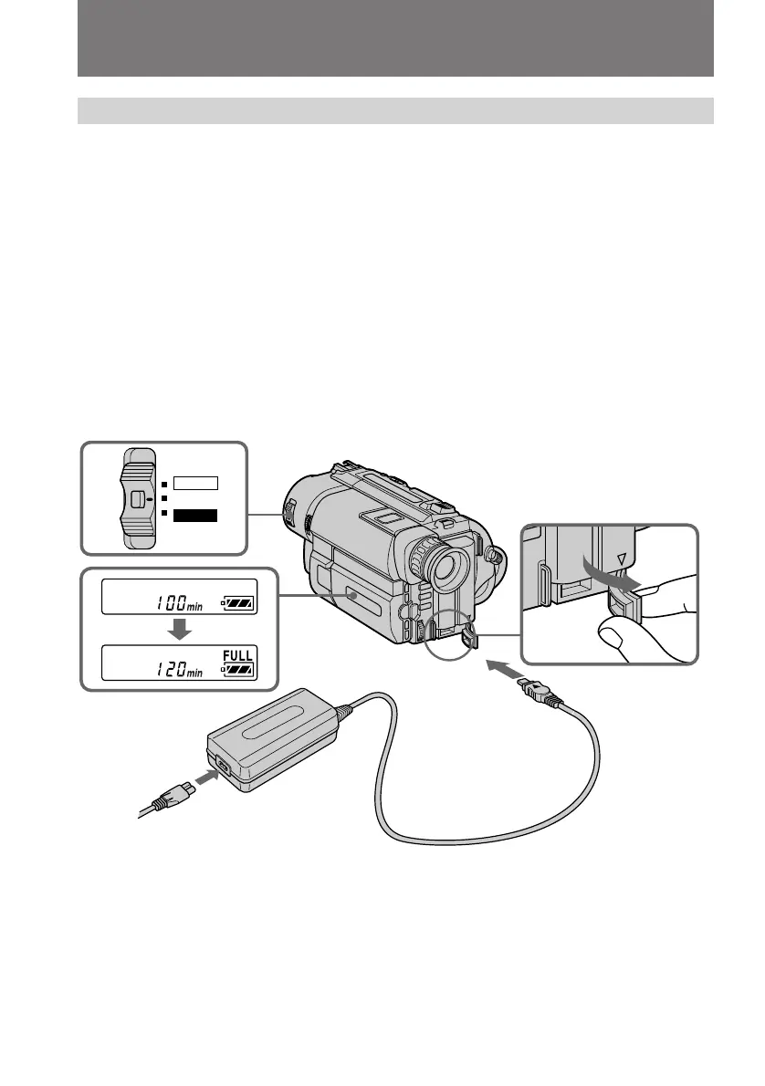 the DC IN jack of the camcorder. You can also use the battery pack before it is