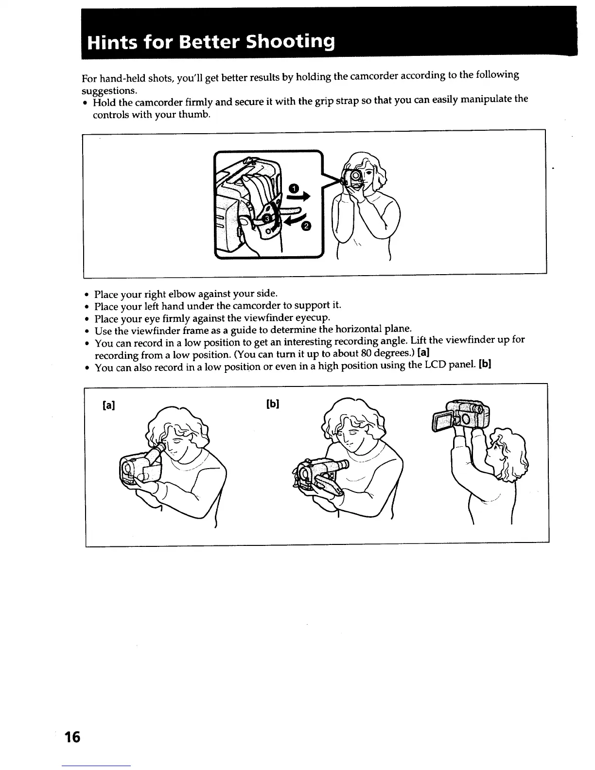 For hand-held shots, you'll get better results by holding the camcorder according to the following