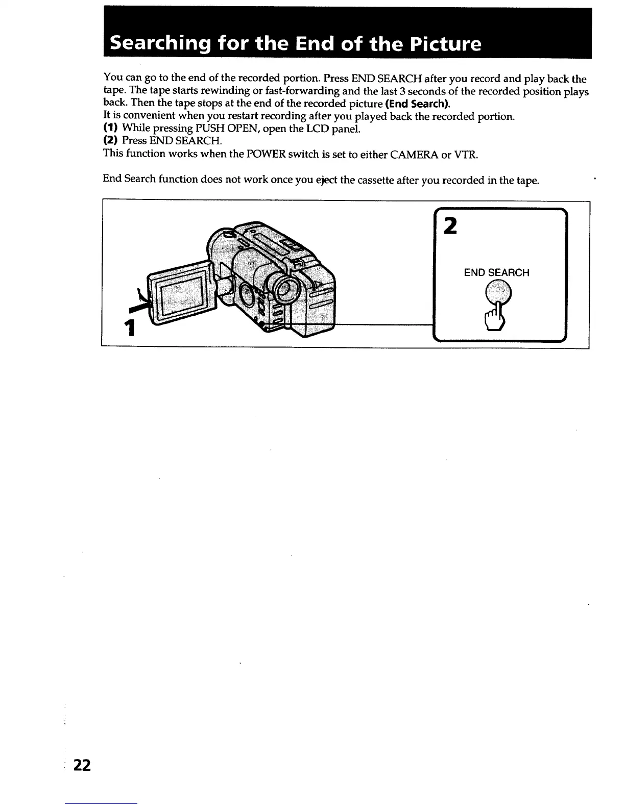 back. Then the tape stops at the end of the recorded picture (End Search).