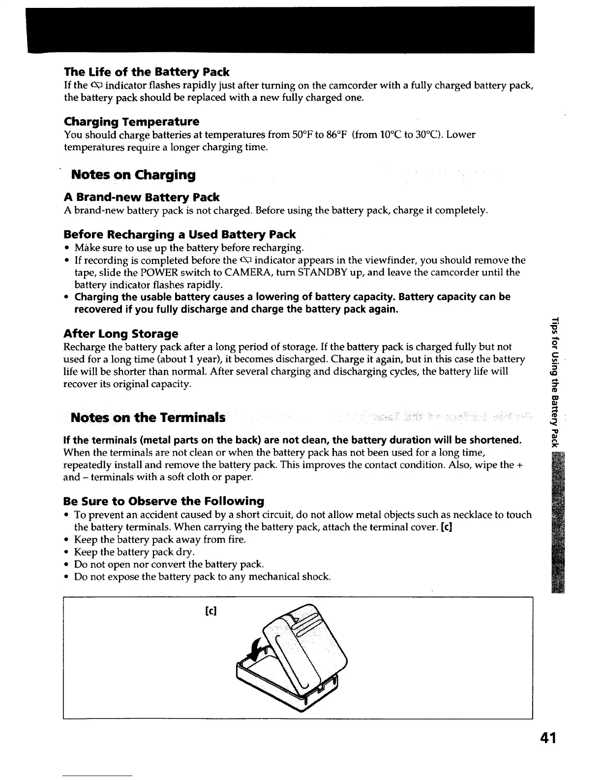 the battery terminals. When carrying the battery pack, attach the terminal cover. [c]