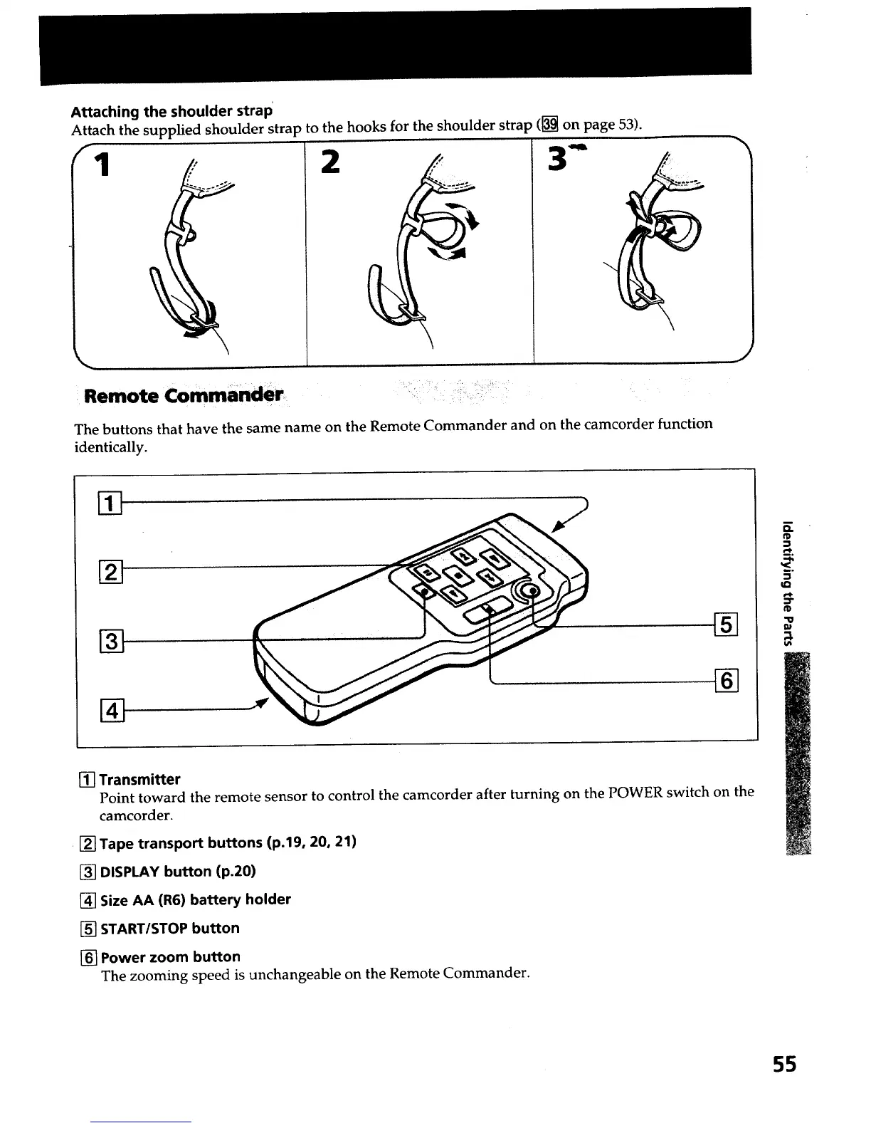 Attach the supplied shoulder strap to the hooks for the shoulder strap (_--_on page 53).
