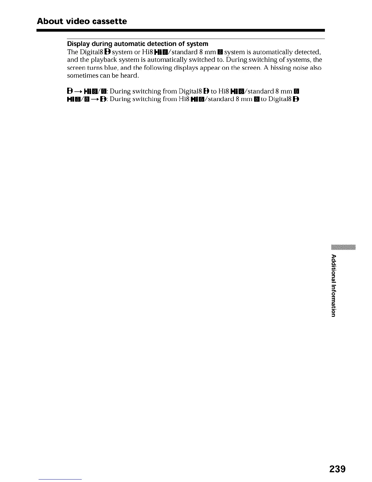 The Digital8 [D system or Hi8 [,lllll/standard 8 mm [] system is automatically detected,