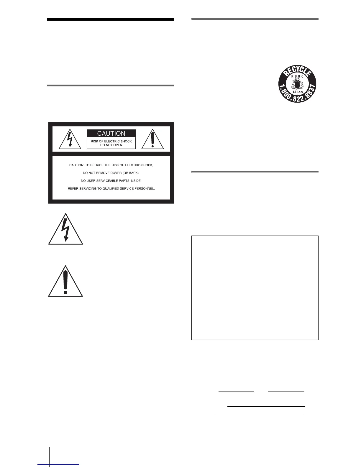 Sony Customer Information Center 1-800-222-SONY