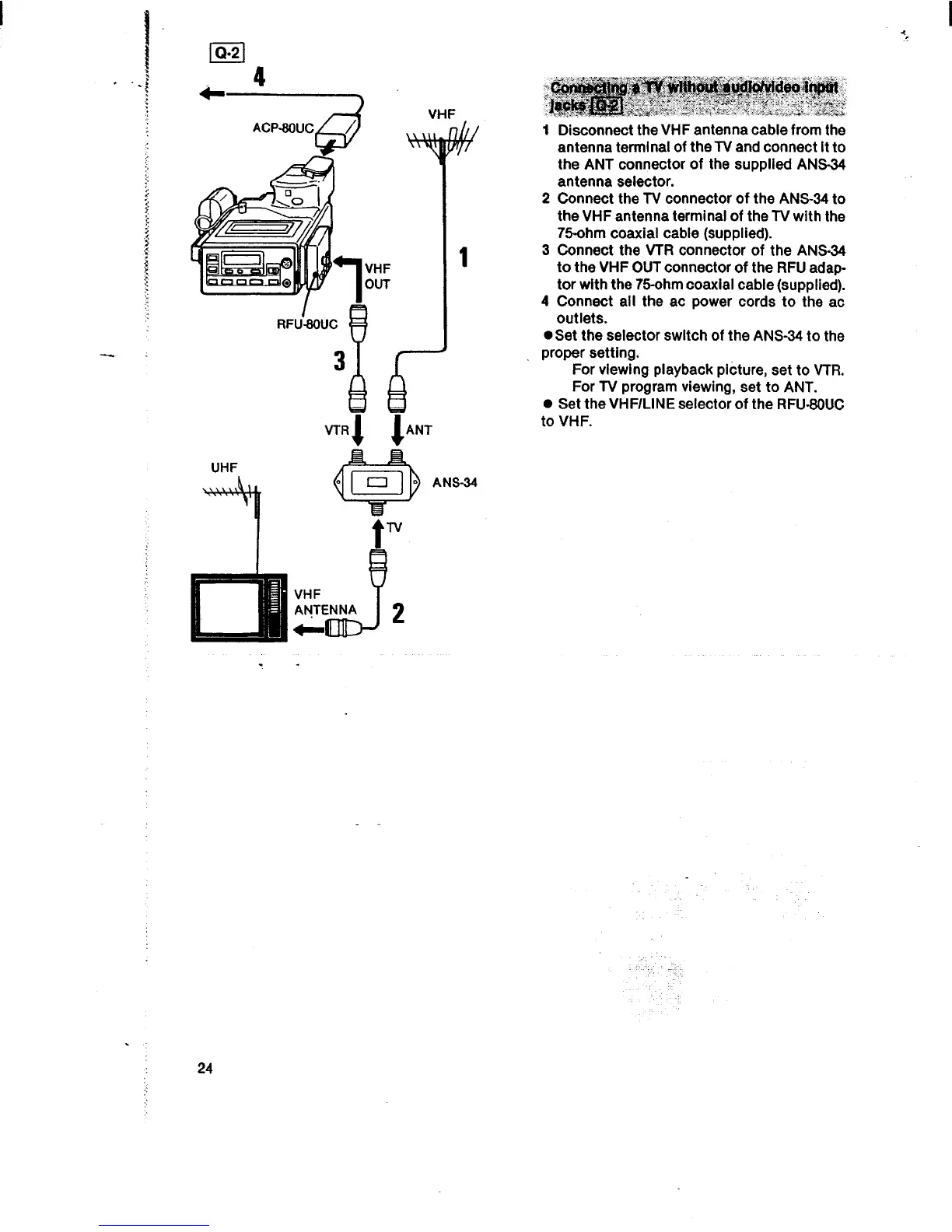 Sony CCD-V8 - TV Playback Connections; Connecting to TVs Without AV Inputs