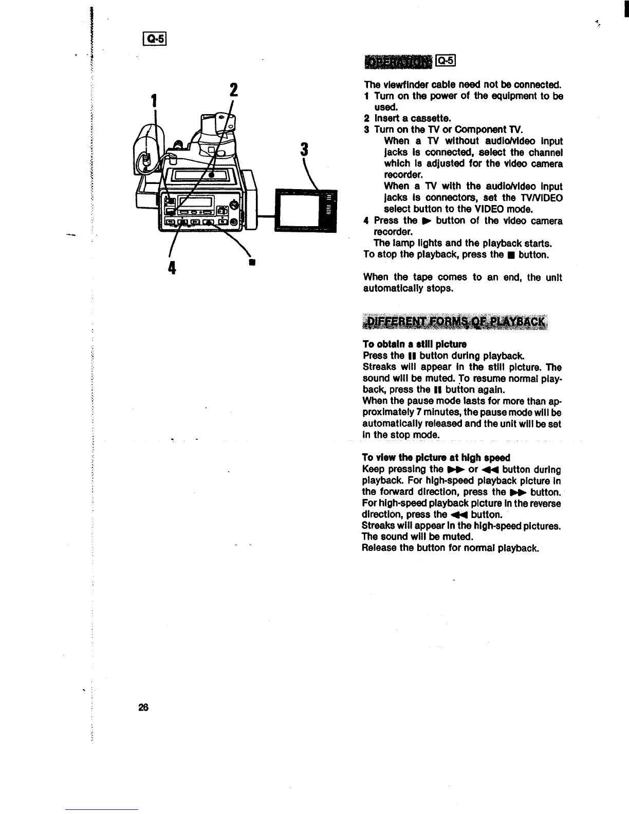 Sony CCD-V8 - Playback Operations and Modes; Basic Playback Operation; Still Picture and High-Speed Playback