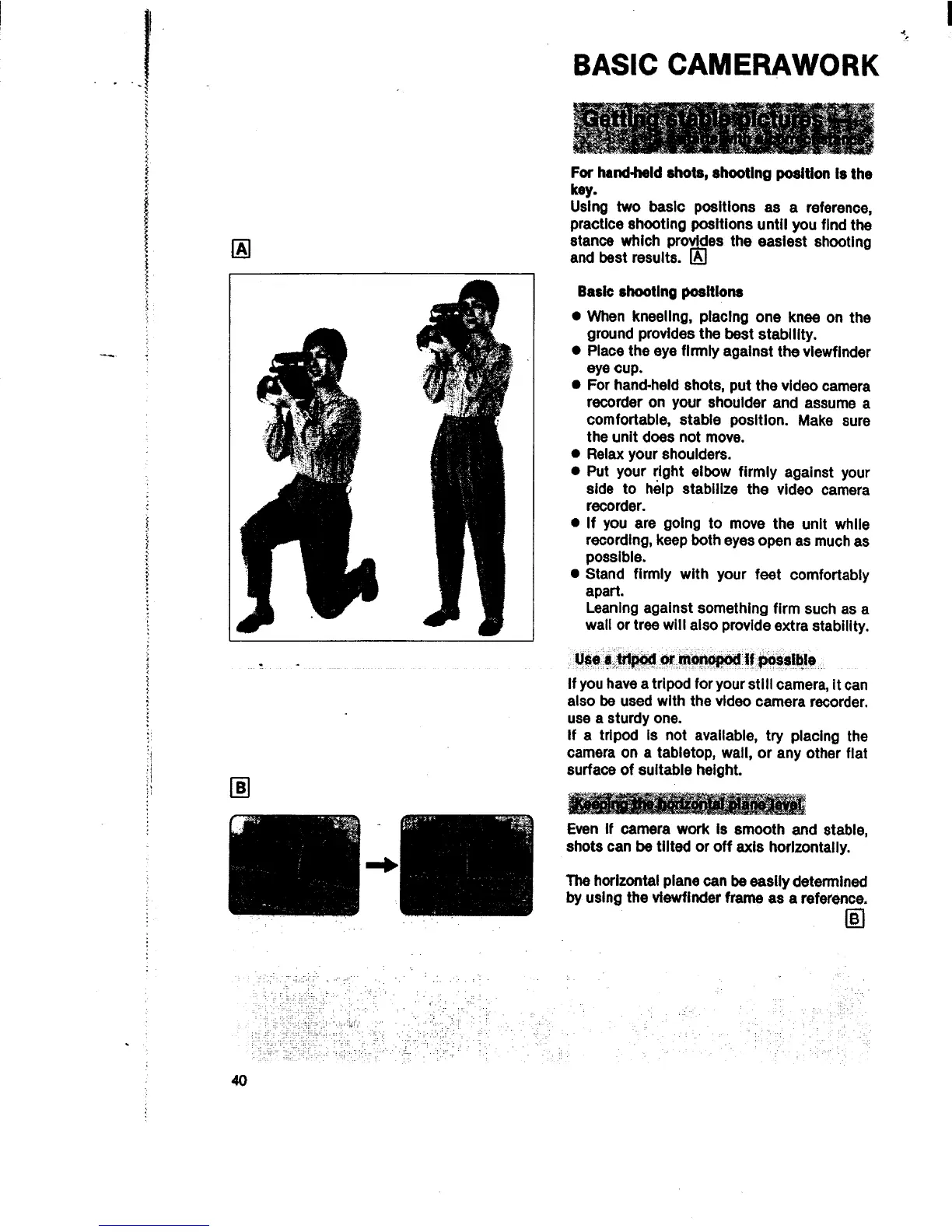 Sony CCD-V8 - Basic Camerawork; Keeping the Horizontal Plane Level; Basic Shooting Positions; Use a Tripod if Possible