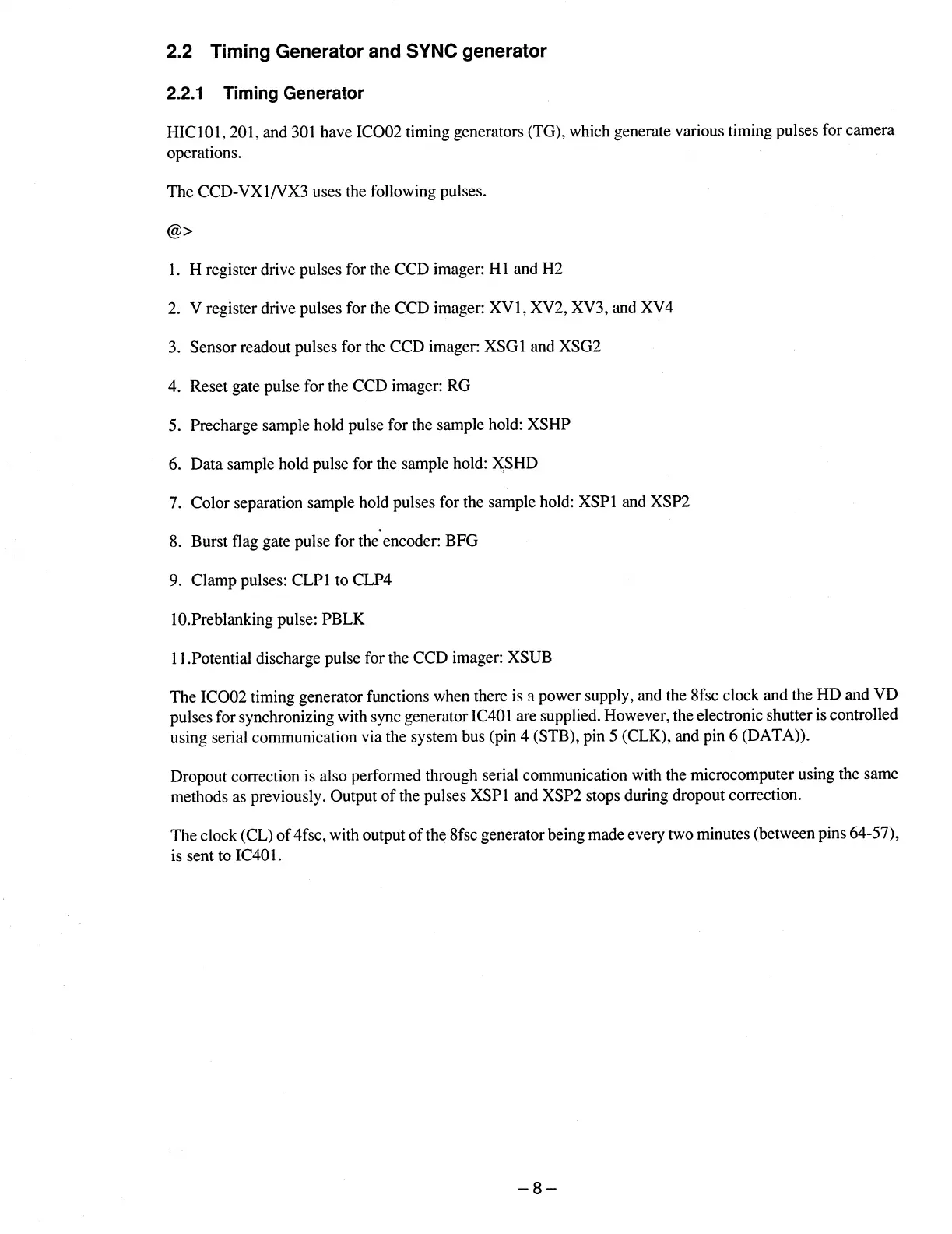 Sony ccd-vx3 - Timing Generator and SYNC generator; Timing Generator