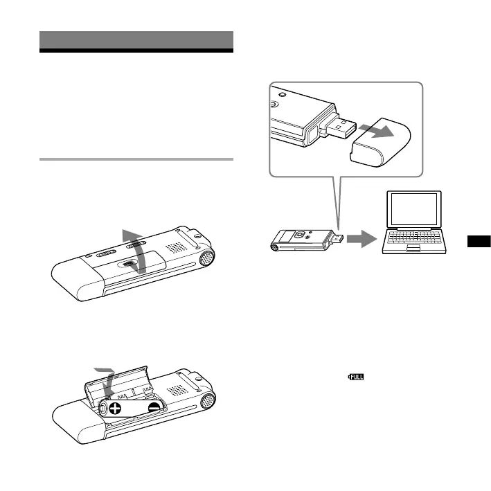 1 Slide and lift the battery