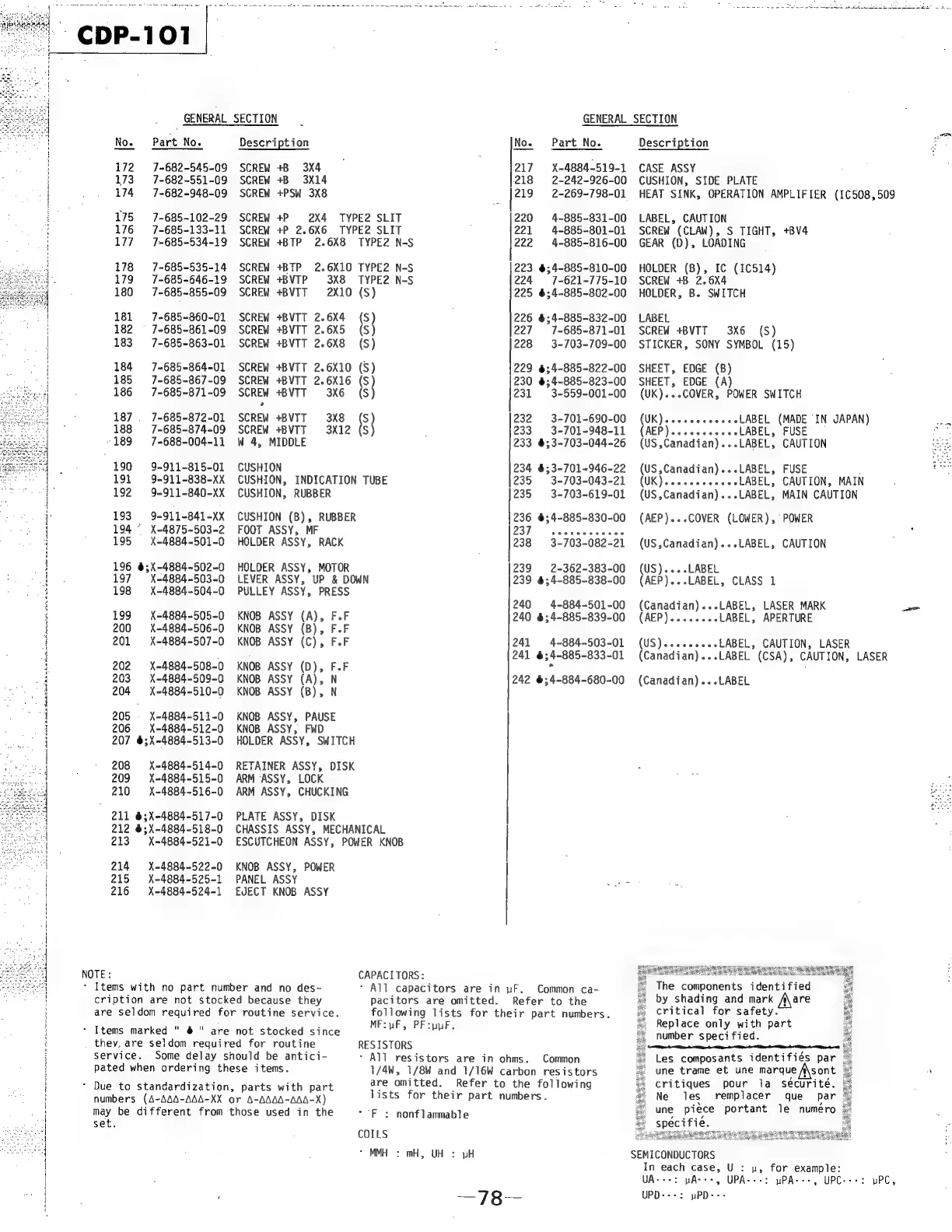 Sony CDP-101 - Parts List: Electrical Components