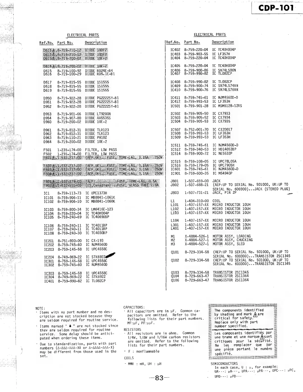 Sony CDP-101 - Parts List: Motors, Switches, Transistors