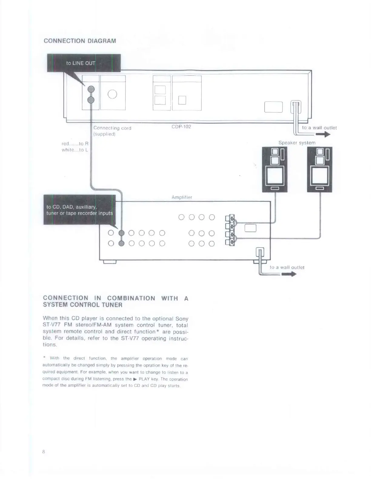 Sony CDP-102 - Connection Diagram; Connection in Combination with a System Control Tuner