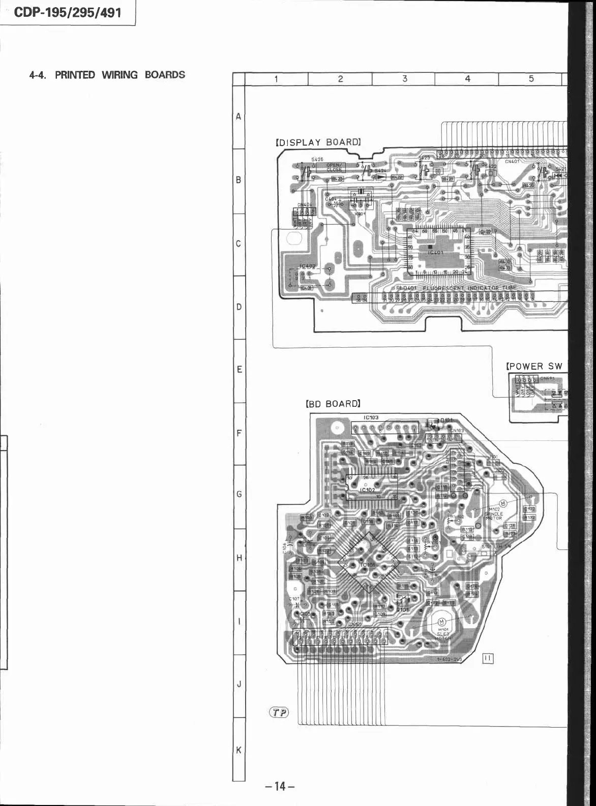 Sony CDP-295 - Printed Wiring Board Layouts; Display, BD, and Power Switch Board Layouts