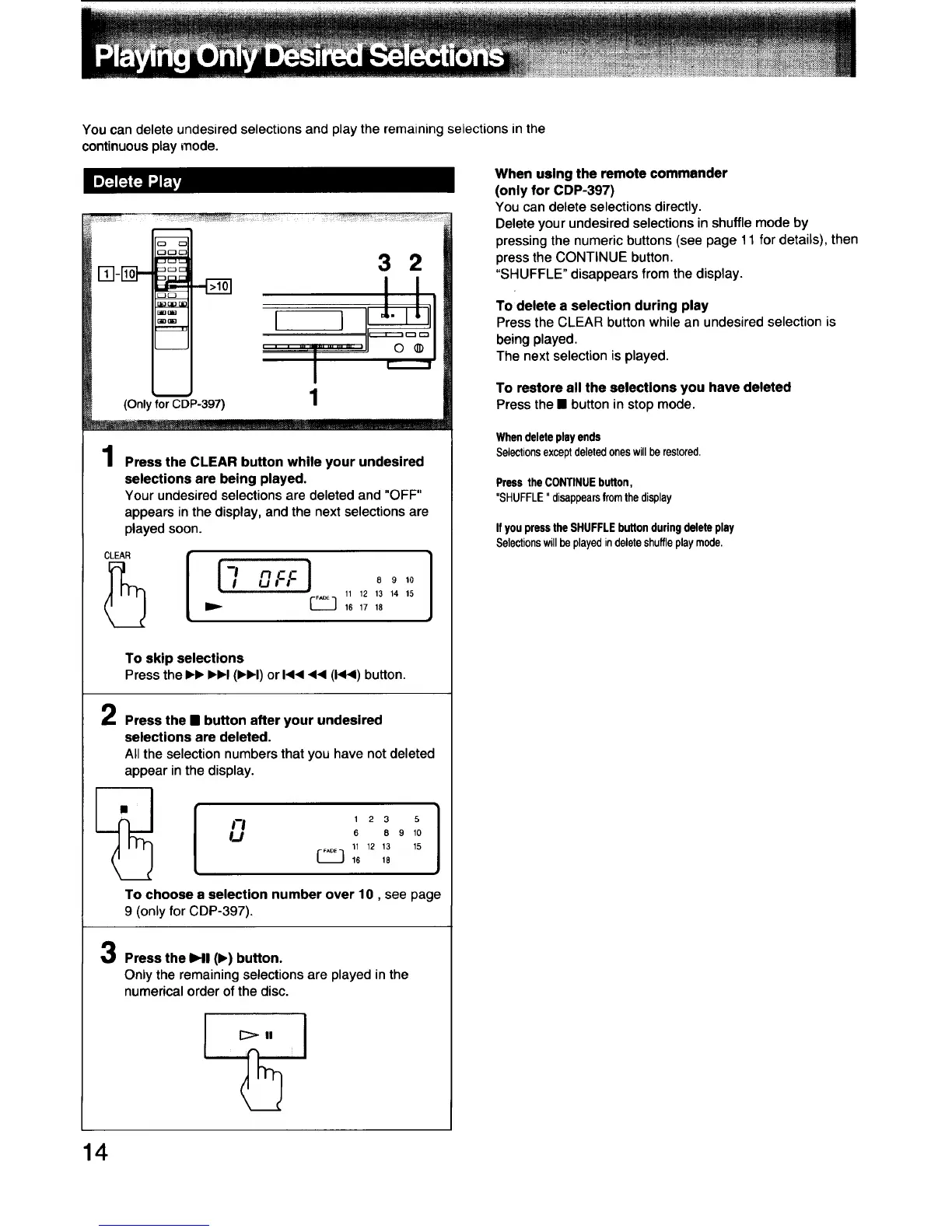 Selectionswillbeplayedindeleteshuffleplaymode,