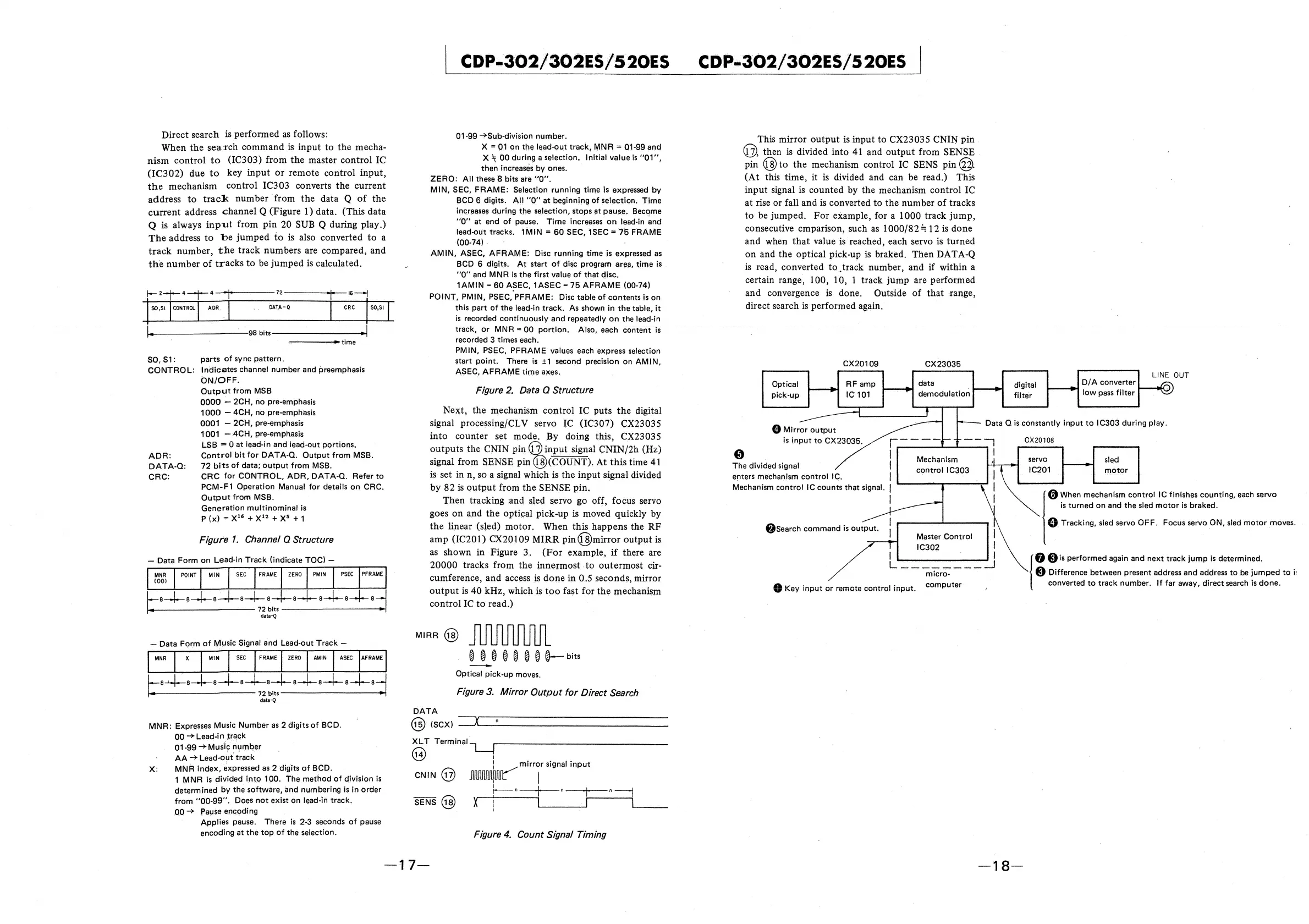 Sony CDP-302ES - Data Structures and Signal Timing; Channel Q, Data Q, and Direct Search Signals