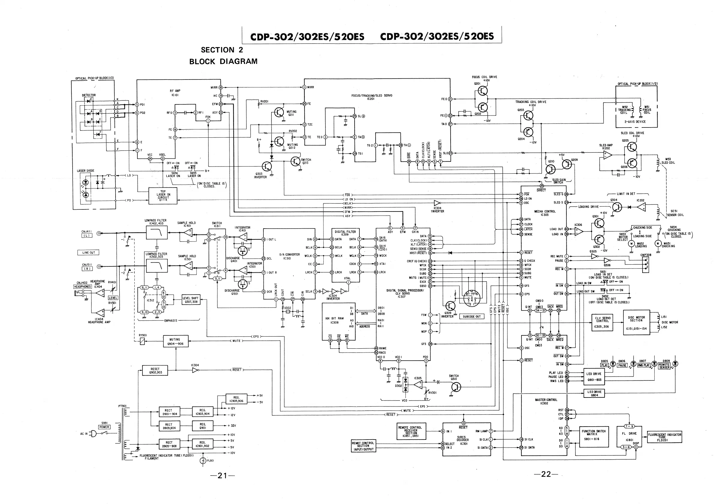 Sony CDP-302ES - Block Diagrams; Optical Pick-up and Servo Circuit Block Diagrams; Signal Processing and Control Circuit Block Diagrams