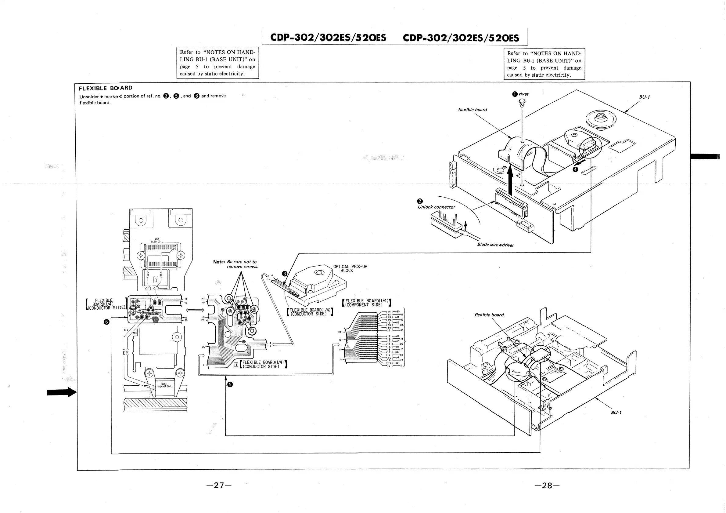Sony CDP-302ES - Flexible Board Servicing; Flexible Board Removal Procedure