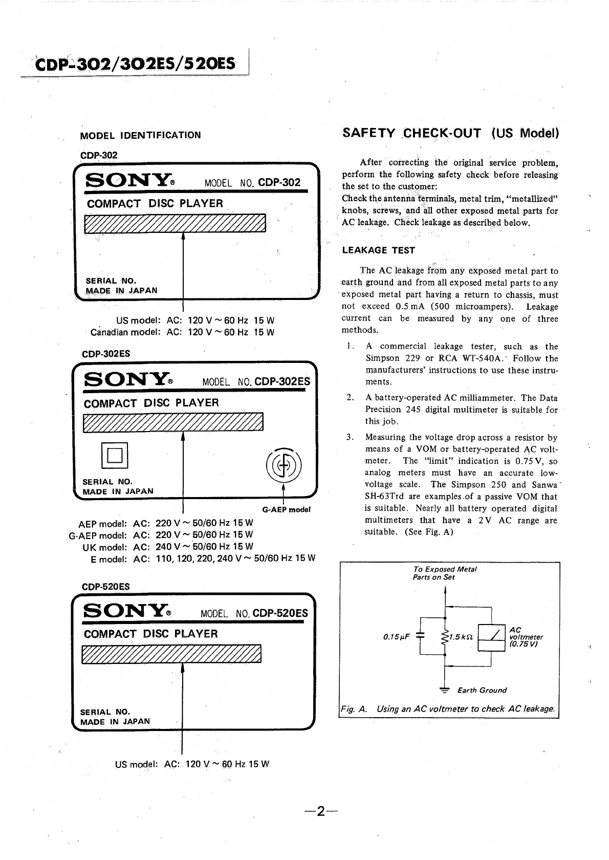 Sony CDP-302ES - Safety Check-Out Procedures; AC Leakage Testing Method