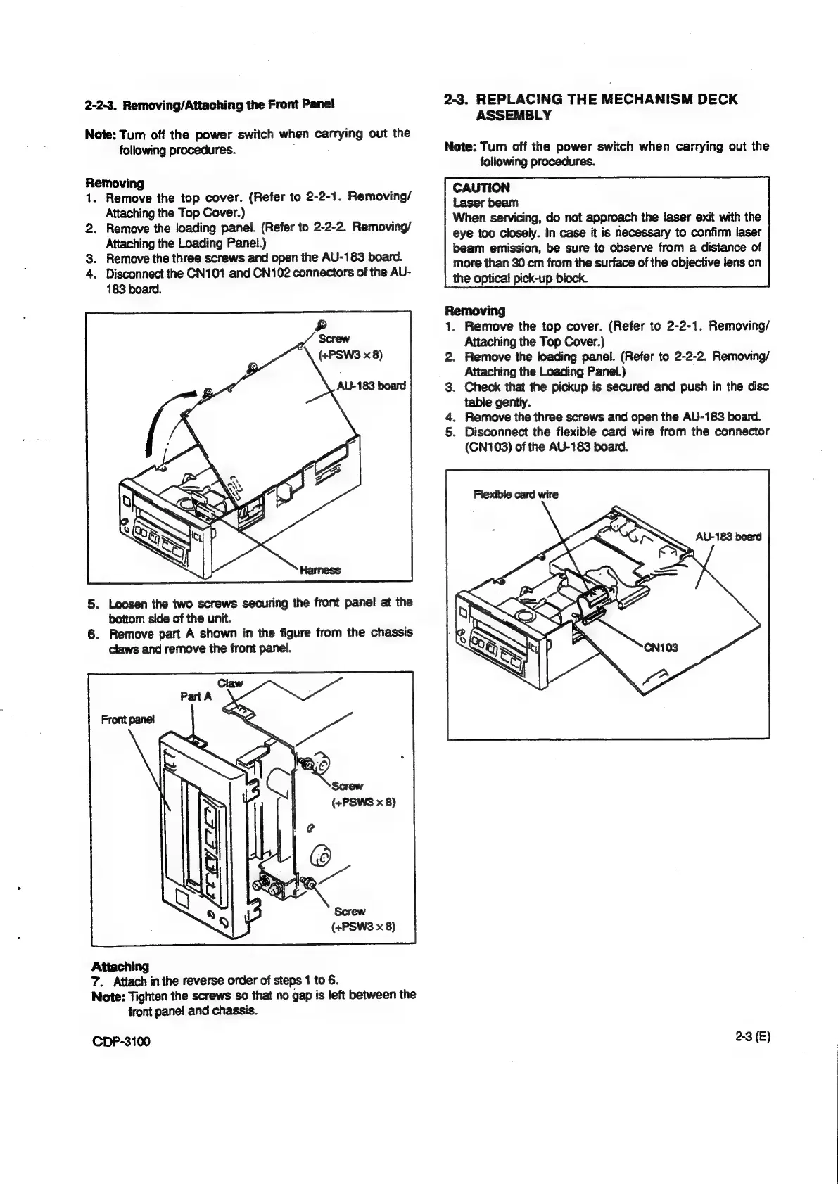 Sony CDP-3100 - Removing;Attaching the Front Panel; Replacing the Mechanism Deck