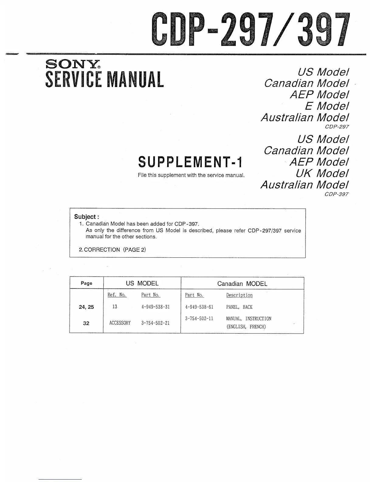Other manuals for Sony CDP-397