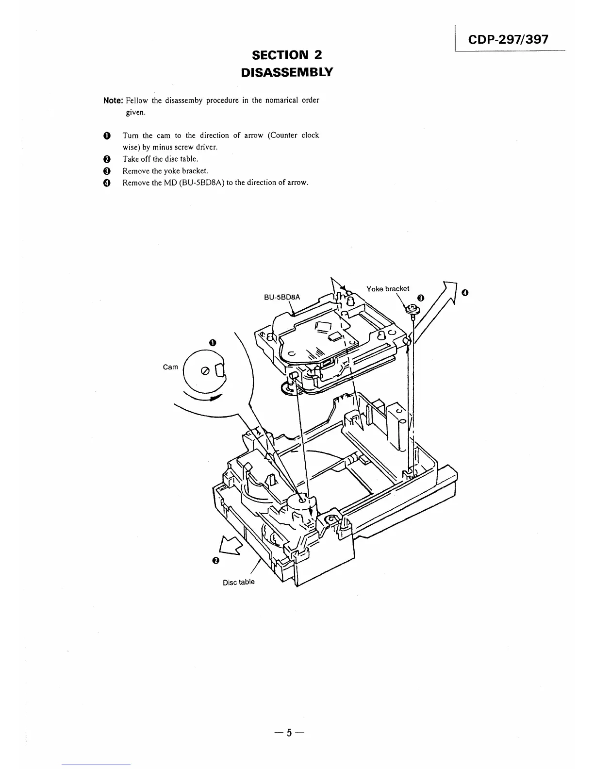 Sony CDP-397 - Disassembly Procedure; Disc Table and Yoke Bracket Removal