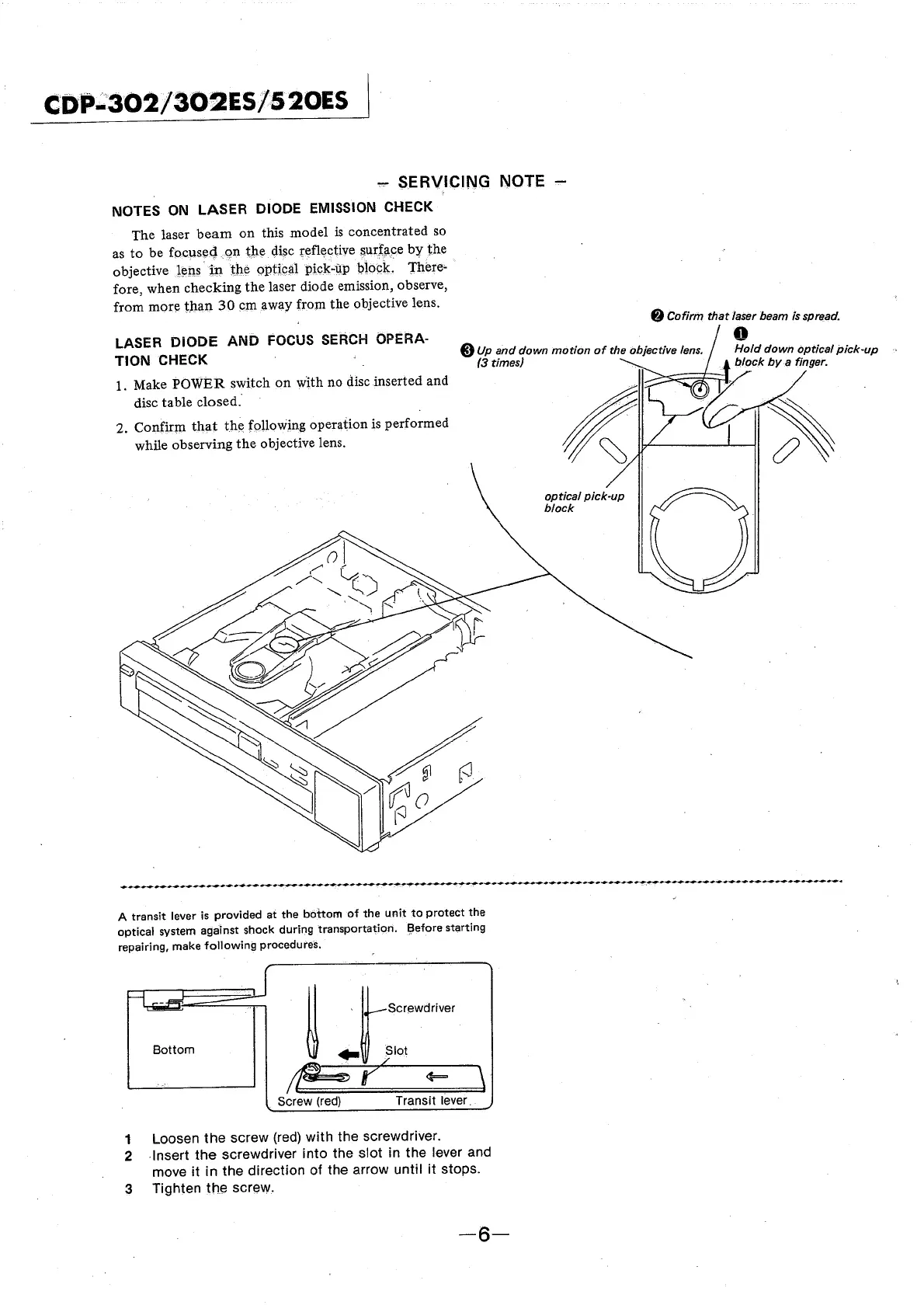 Sony CDP-520ES - Servicing Note; Notes on Laser Diode Emission Check; Laser Diode and Focus Search Operation Check