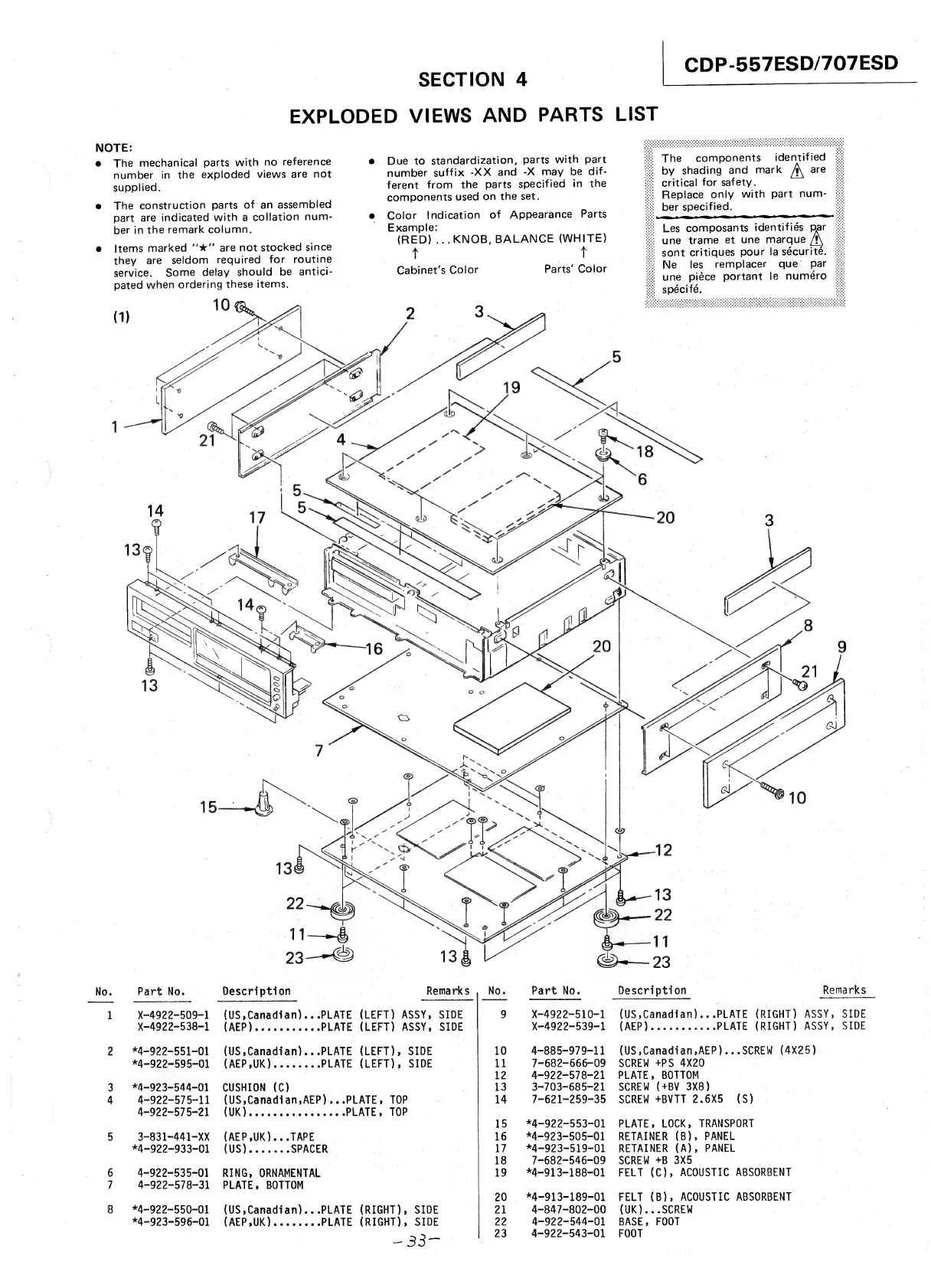 Sony CDP-557ESD - Section 4: Exploded Views and Parts List; Exploded Views and Parts List