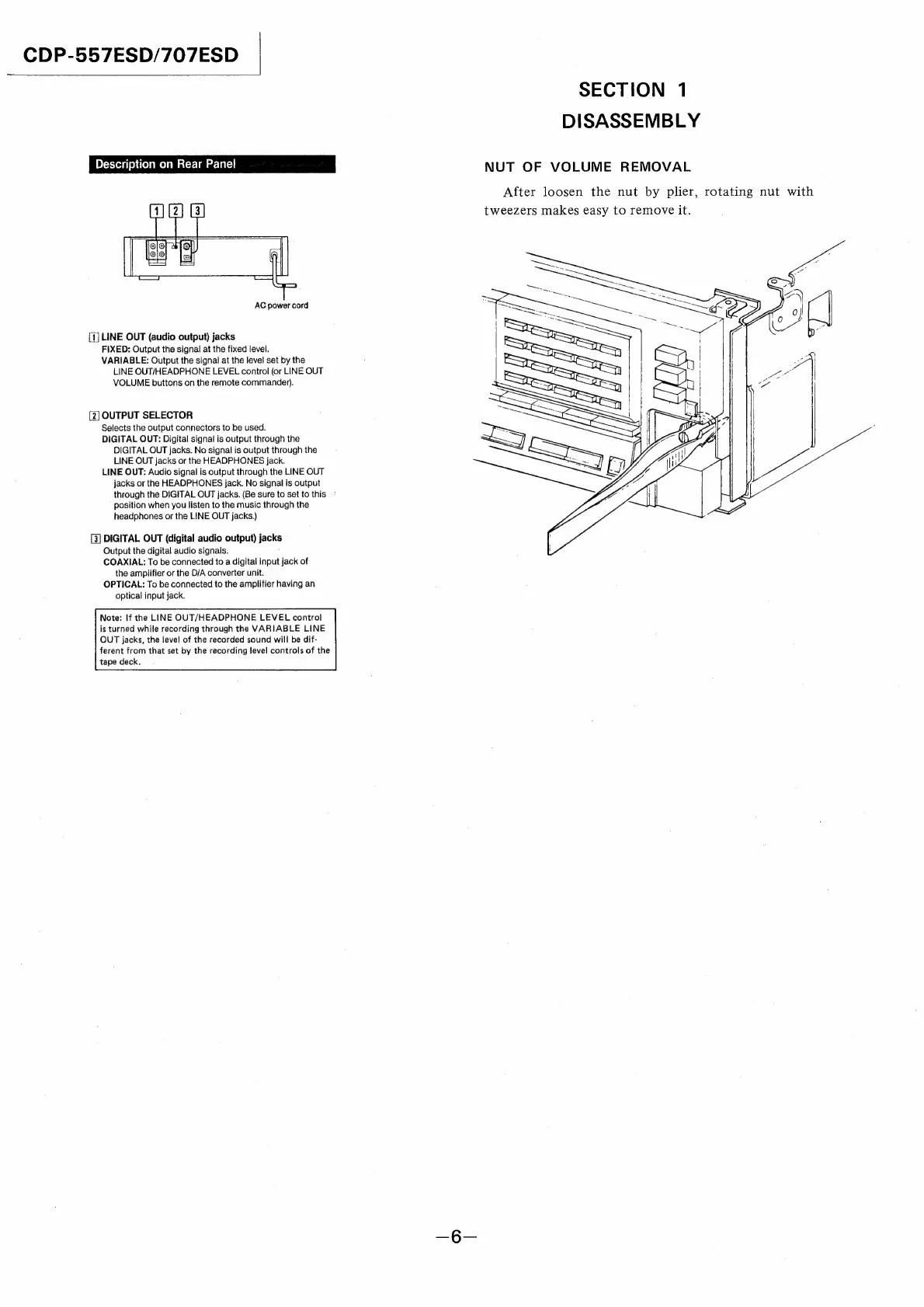 Sony CDP-557ESD - Section 1: Disassembly; Nut of Volume Removal