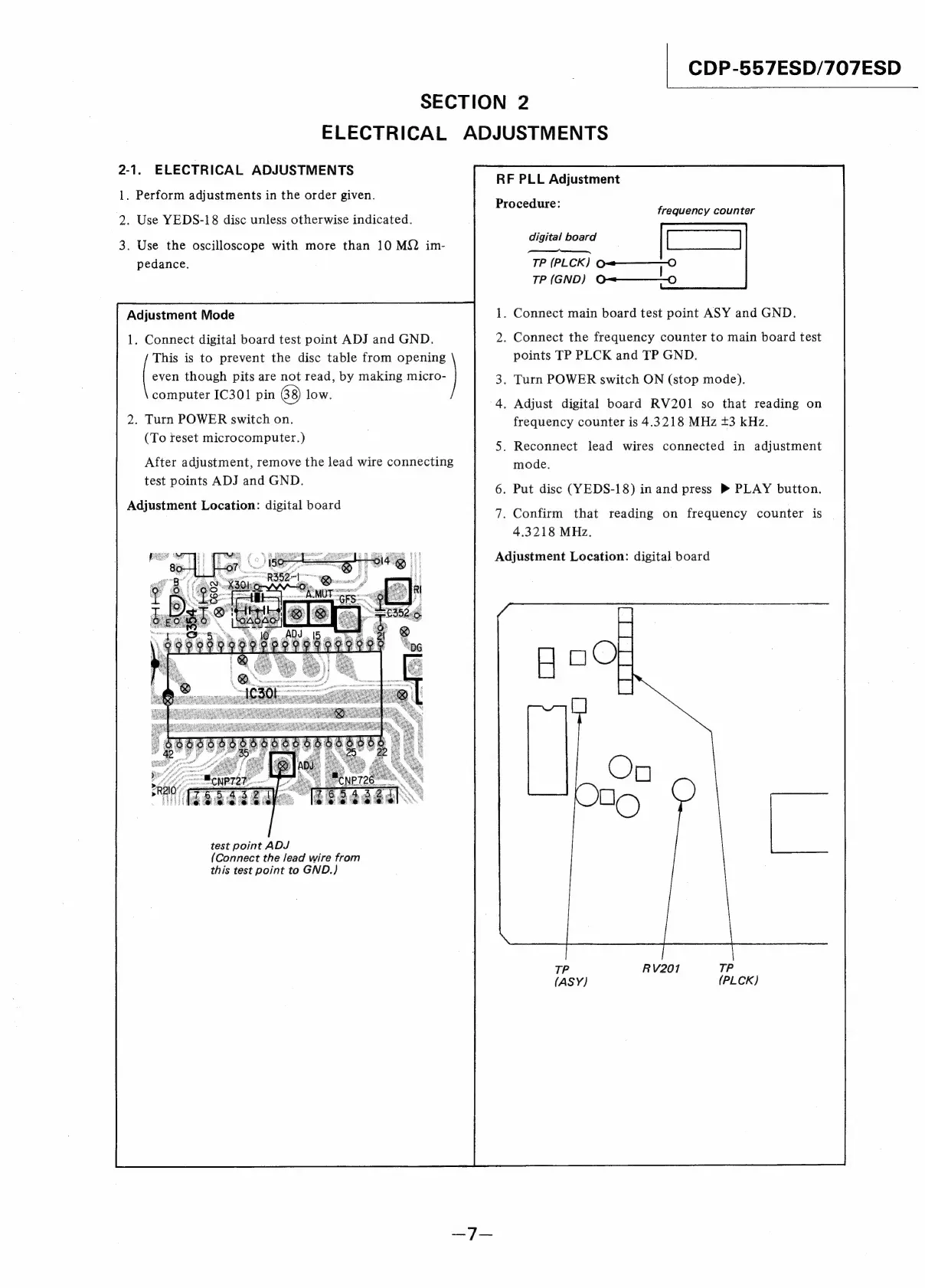 Sony CDP-557ESD - Section 2: Electrical Adjustments; Adjustment Mode; RF PLL Adjustment