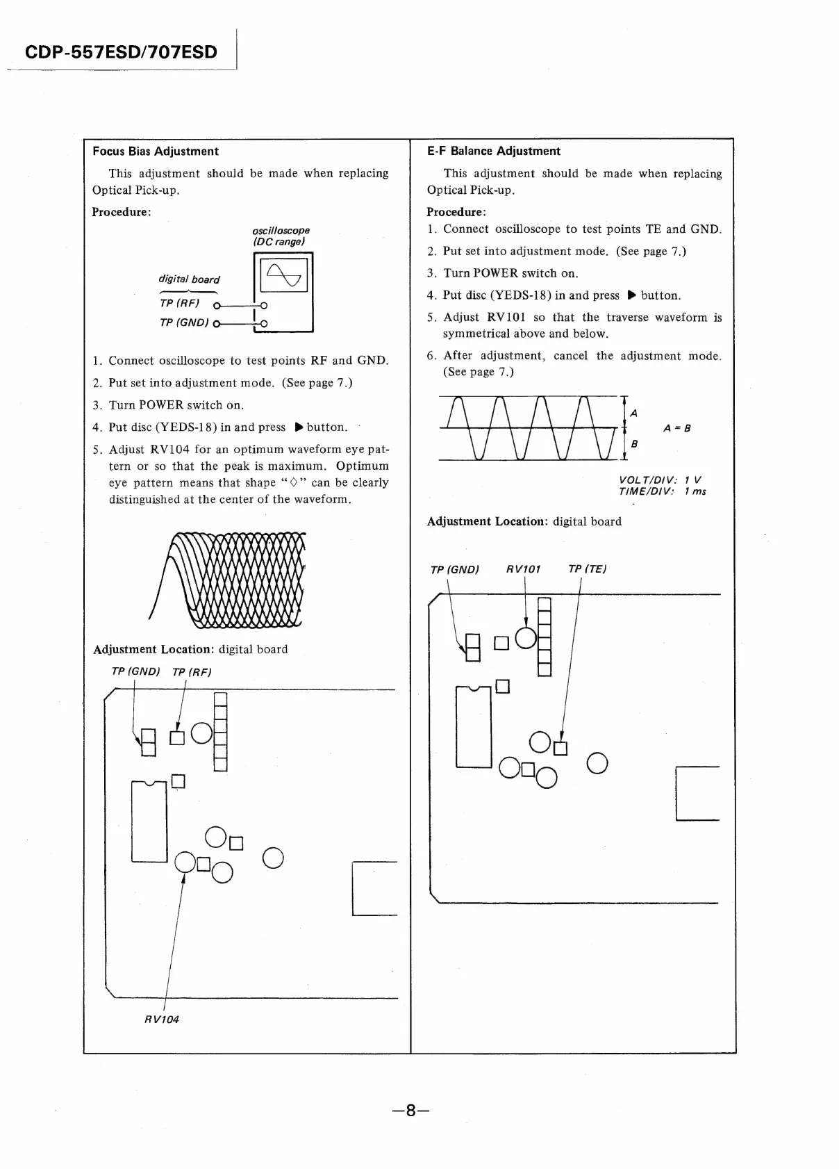 Sony CDP-557ESD - Focus Bias Adjustment; E-F Balance Adjustment