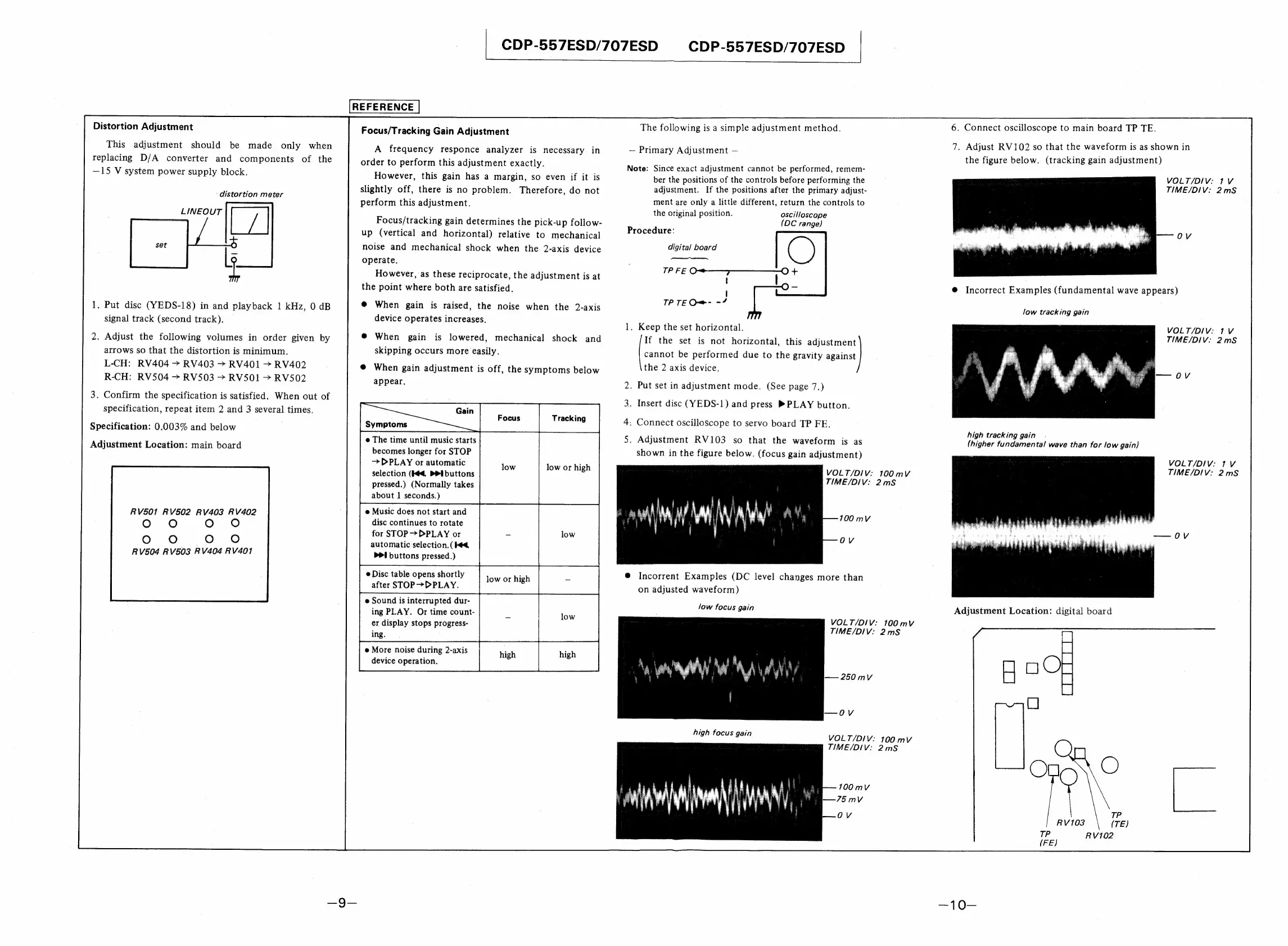 Sony CDP-557ESD - Distortion Adjustment; Focus;Tracking Gain Adjustment