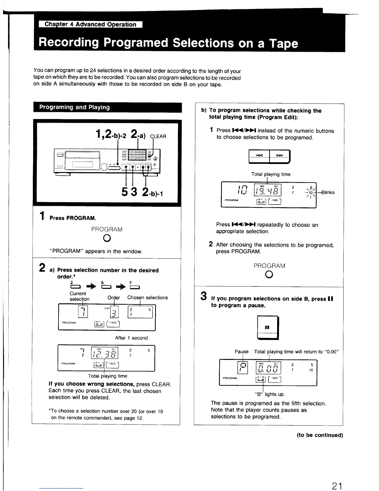 Sony CDP-597 - Chapter 4 Advanced Operation; Recording Programed Selections on a Tape