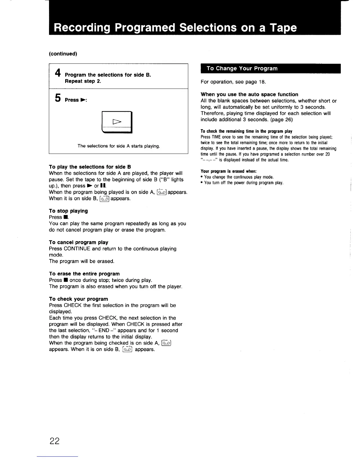 Sony CDP-597 - To Play the Selections for Side; To Cancel Program Play; To Check Your Program