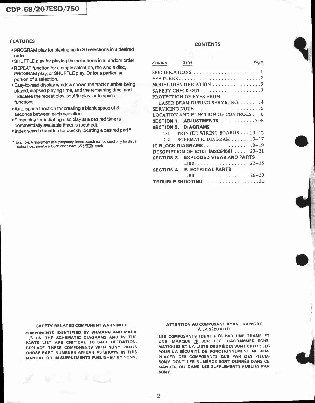 Sony CDP-68 - Table of Contents