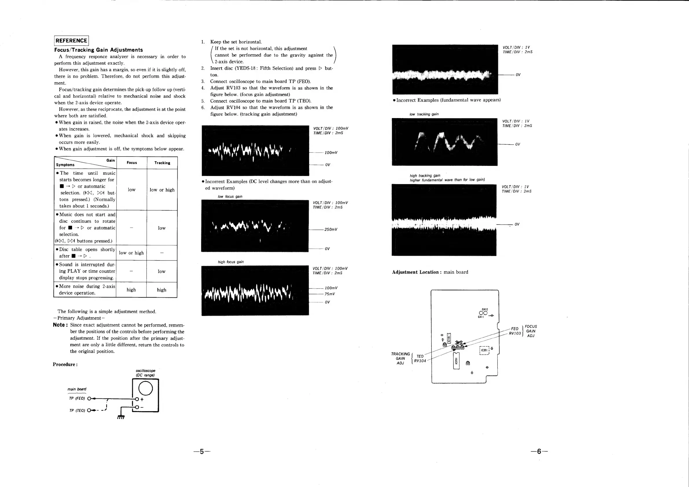 Sony CDP-70 - REFERENCE; Focus;Tracking Gain Adjustments
