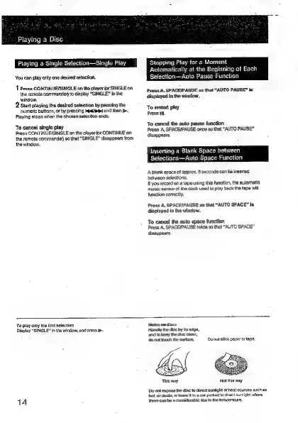 Sony CDP-707ESD - Playback Modes; Single Selection Playback; Auto Pause and Auto Space Functions; Disc Handling Precautions