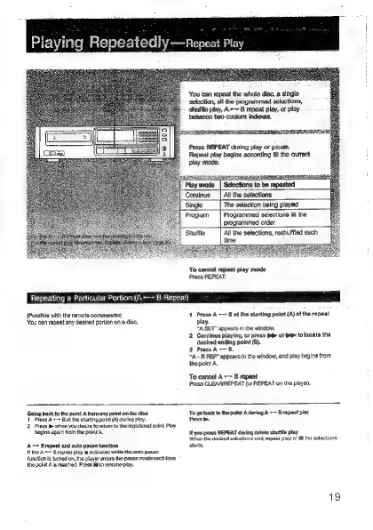 Sony CDP-707ESD - Repeat Play Modes; General Repeat Play; A→B Repeat Function; Repeat Play Notes