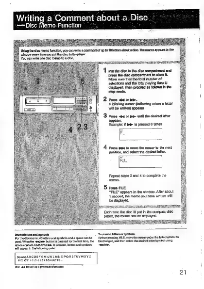 Sony CDP-707ESD - Disc Memo Function; Writing a Disc Comment; Usable Characters and Editing