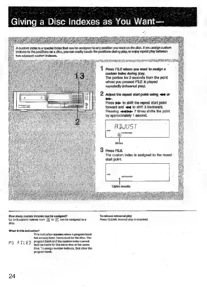 Sony CDP-707ESD - Custom Index Function; Assigning Custom Indexes; Custom Index Capacity; Custom Index Indications