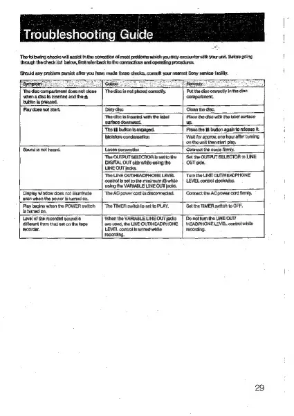 Sony CDP-707ESD - Troubleshooting Guide; Common Issues and Solutions