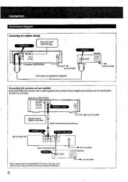 Sony CDP-707ESD - Connection Diagrams; Direct Amplifier Connection; D;A Converter Connection