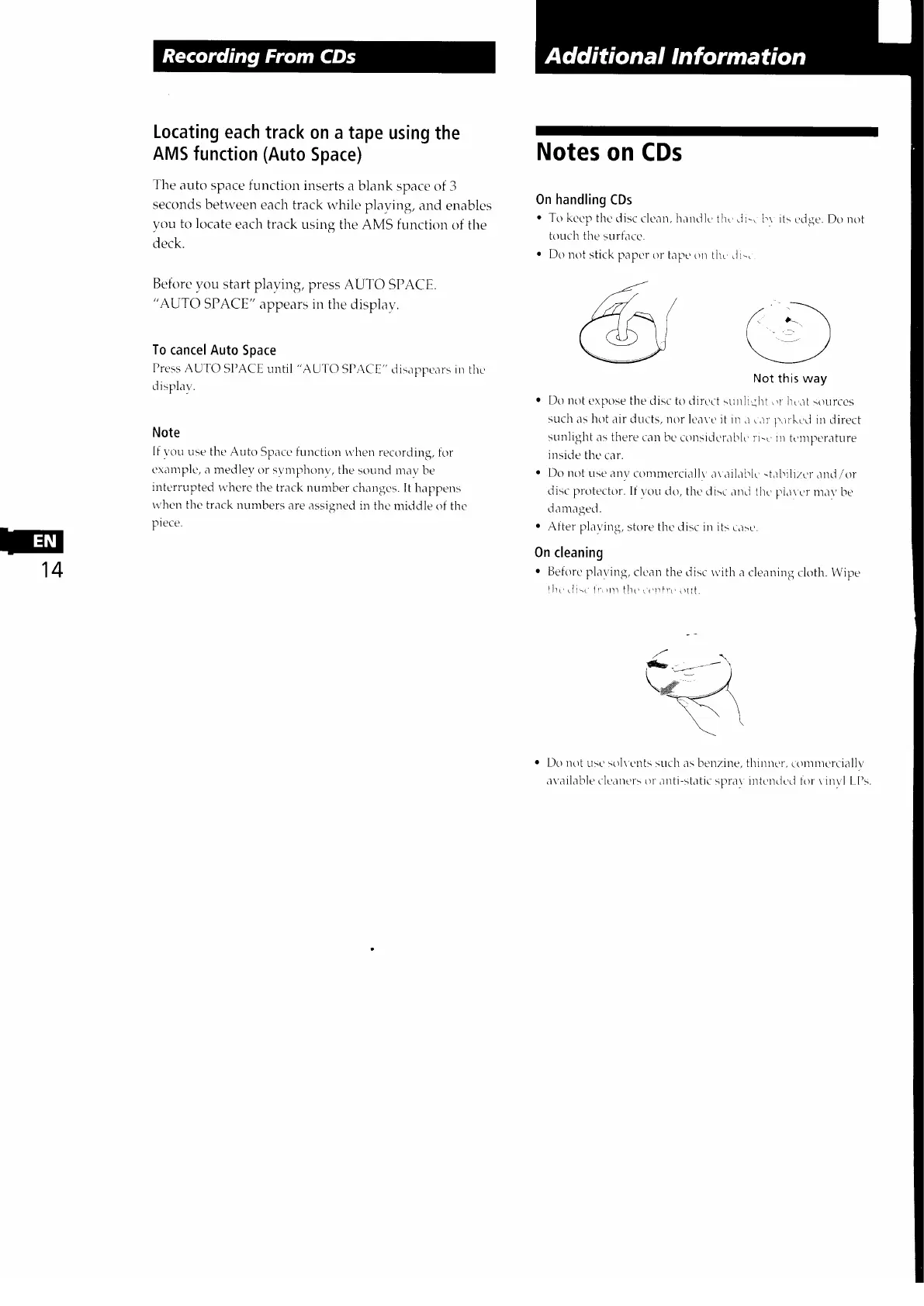 Sony CDP-761 - Auto Space for Track Location; Additional Information; Notes on CD Handling and Cleaning