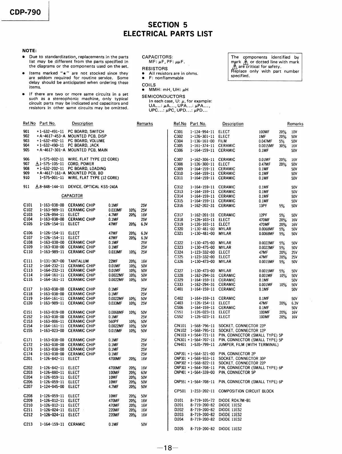 Sony CDP-790 - SECTION 5 ELECTRICAL PARTS LIST