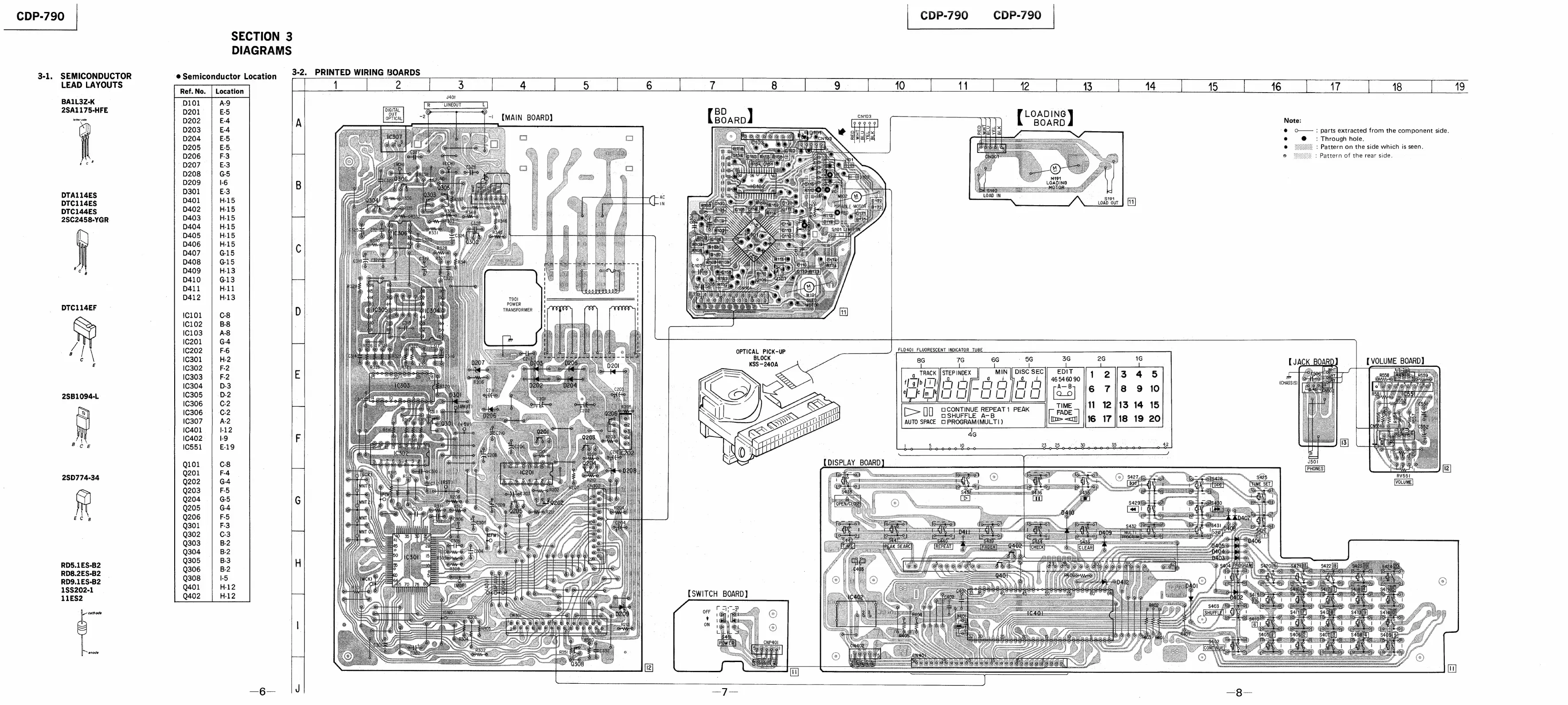 Sony CDP-790 - SECTION 3 DIAGRAMS; 3-1. SEMICONDUCTOR LEAD LAYOUTS; 3-2. PRINTED WIRING BOARDS