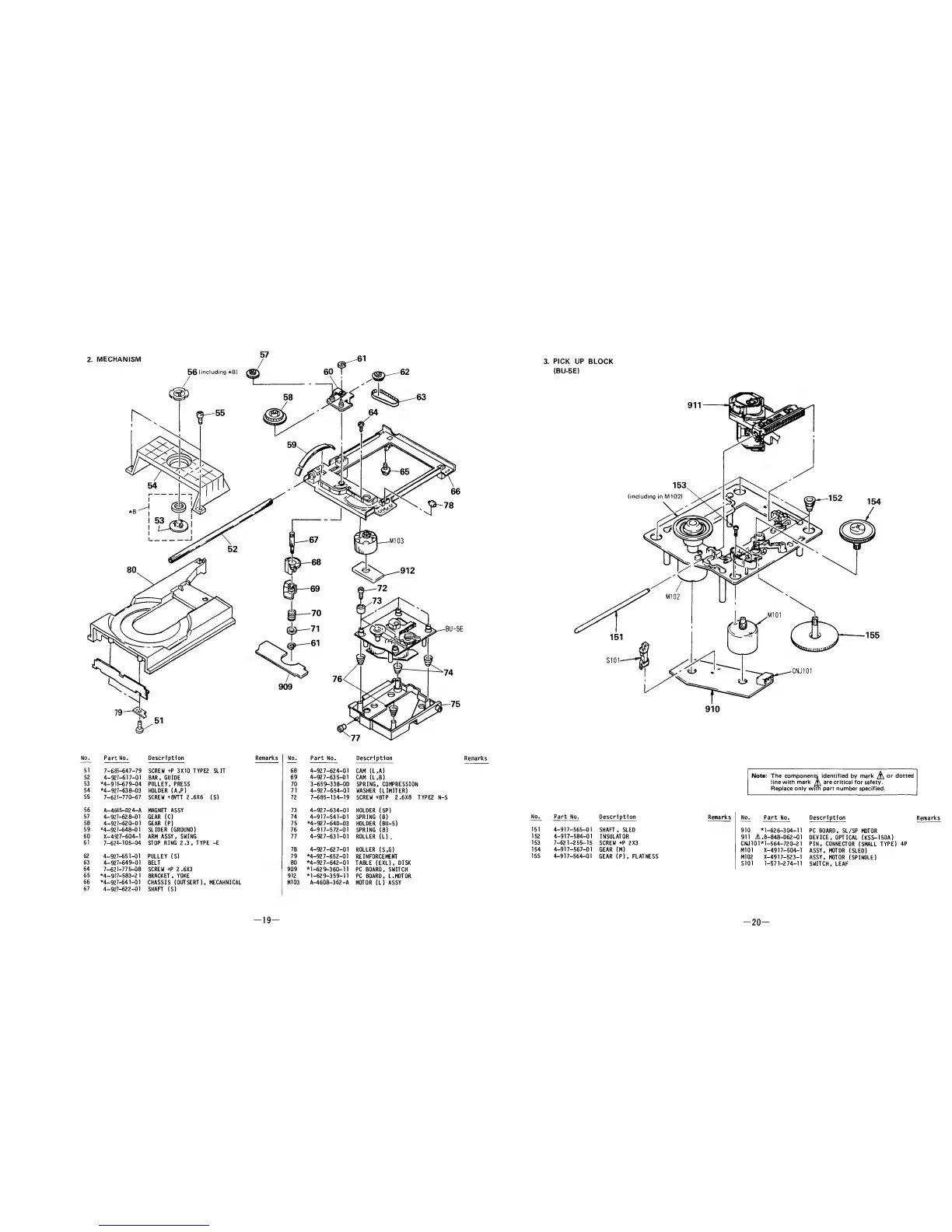 Sony CDP-970 - Exploded View: Mechanism; Exploded View: Pick-Up Block