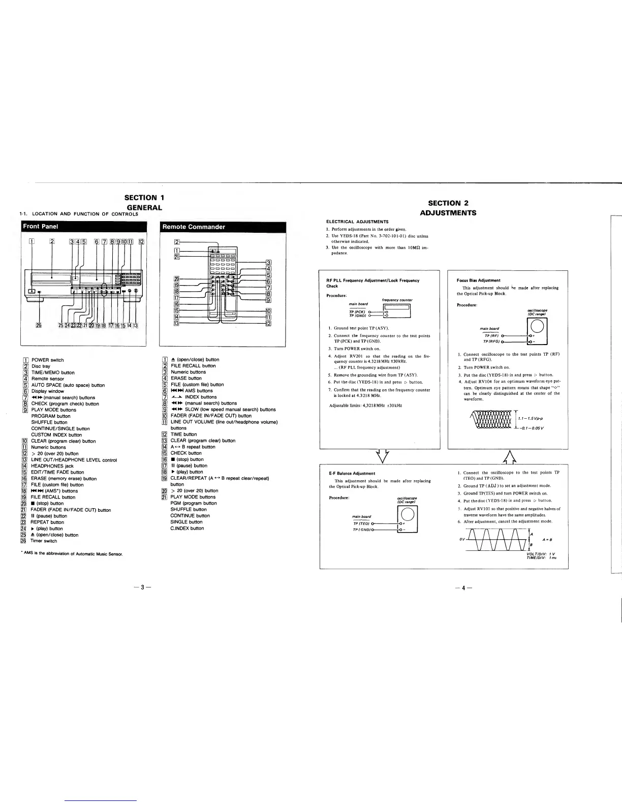 Sony CDP-970 - Adjustments; RF PLL Frequency Adjustment; Focus Bias Adjustment; E-F Balance Adjustment