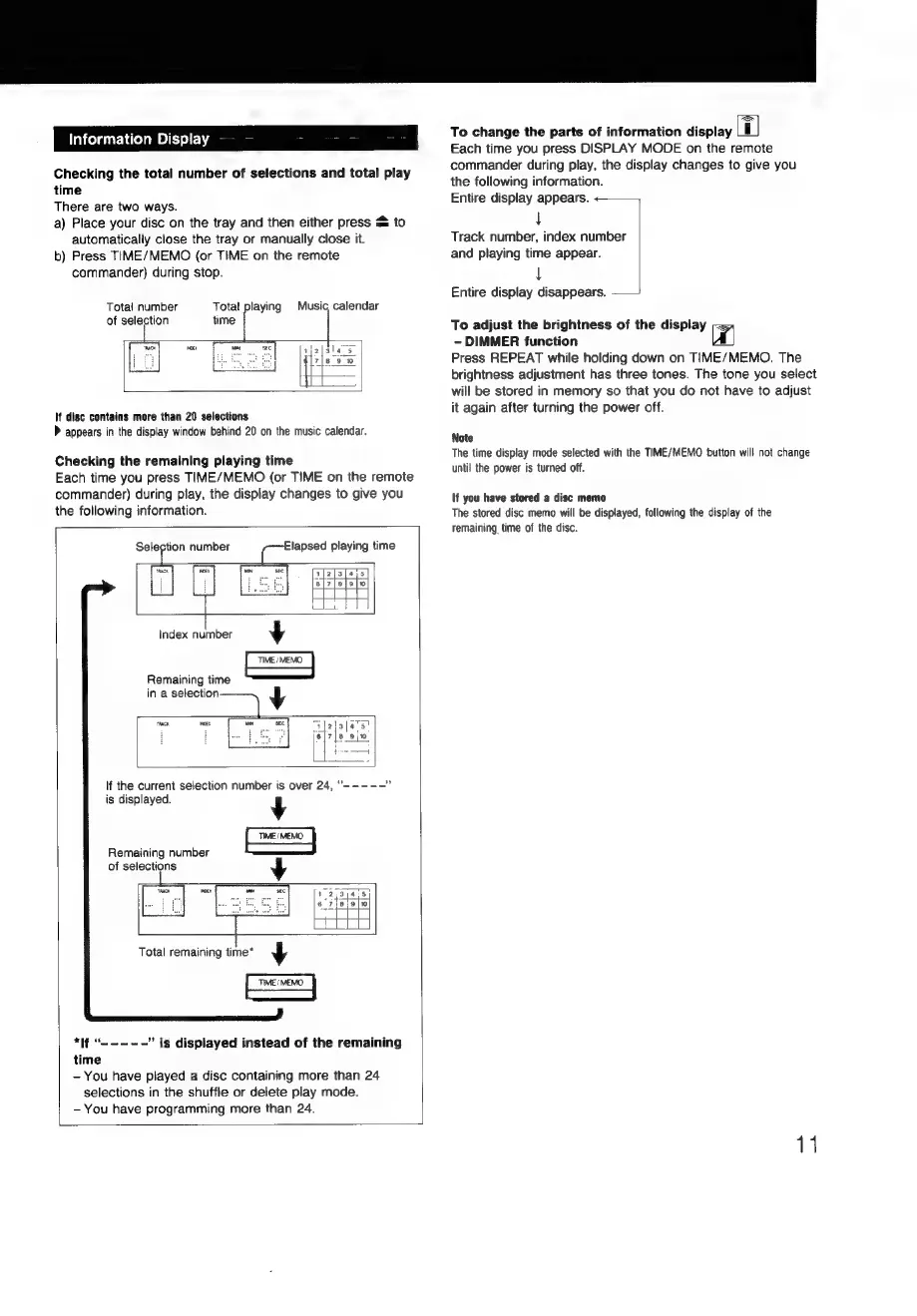 Sony CDP-991 - Understanding Information Displays; Playback Time and Display Adjustments