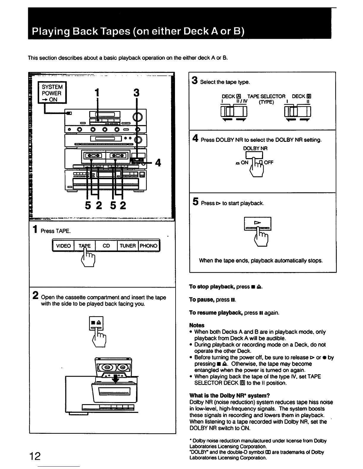 Sony CDP-C221 - Playing Back Tapes; Basic Playback Operation; Dolby NR System Explained