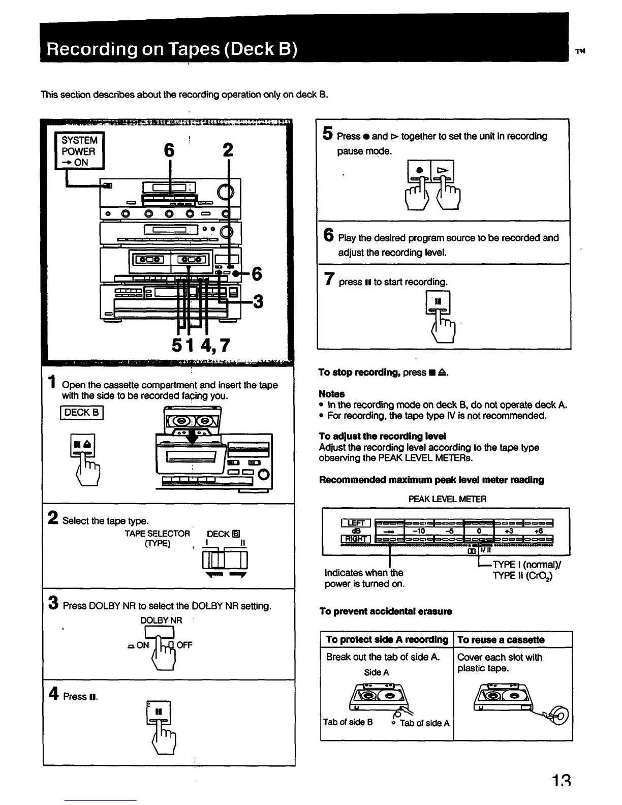 Sony CDP-C221 - Recording on Tapes; Recording Procedure; Adjusting Recording Level; Preventing Accidental Erasure