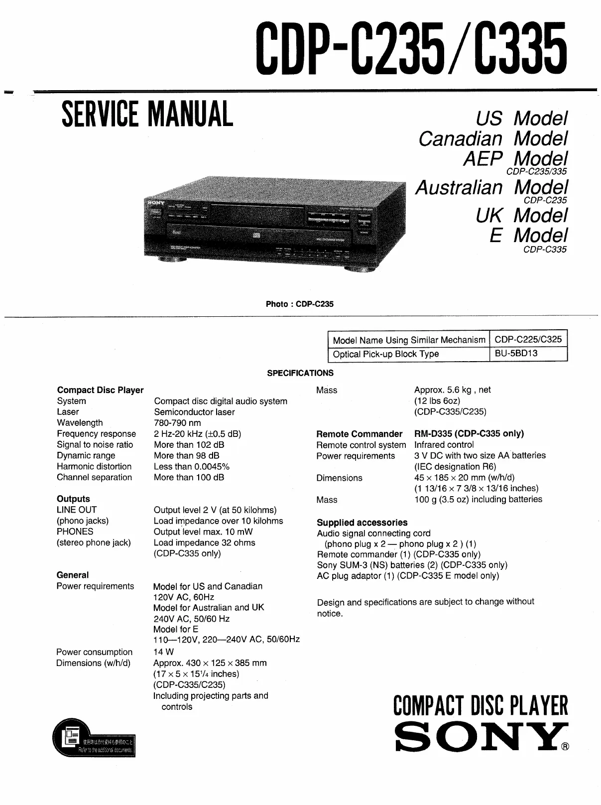 Other manuals for Sony CDP-C245